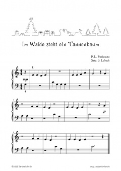 Eine mittelleichte Version (Klavier Solo & Begleitung in vier Tonarten) ist ebenfalls im Shop erhältlich: Im Walde steht ein Tannenbaum